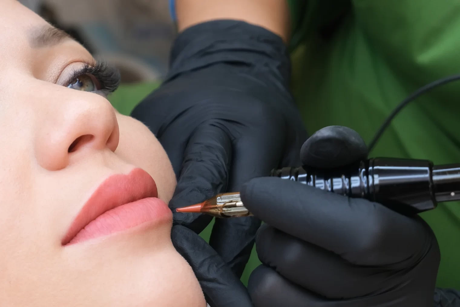 Lip blush is a semi-permanent tattoo that deposits sheer pigment with a PMU machine and fine needles. The result is a soft tint that corrects asymmetry, revives color, and defines the lip border without harsh lines.